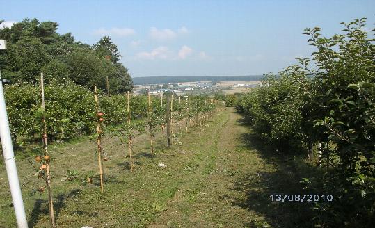 neu gepflanzte Spindelbäume der Sorte Elstar